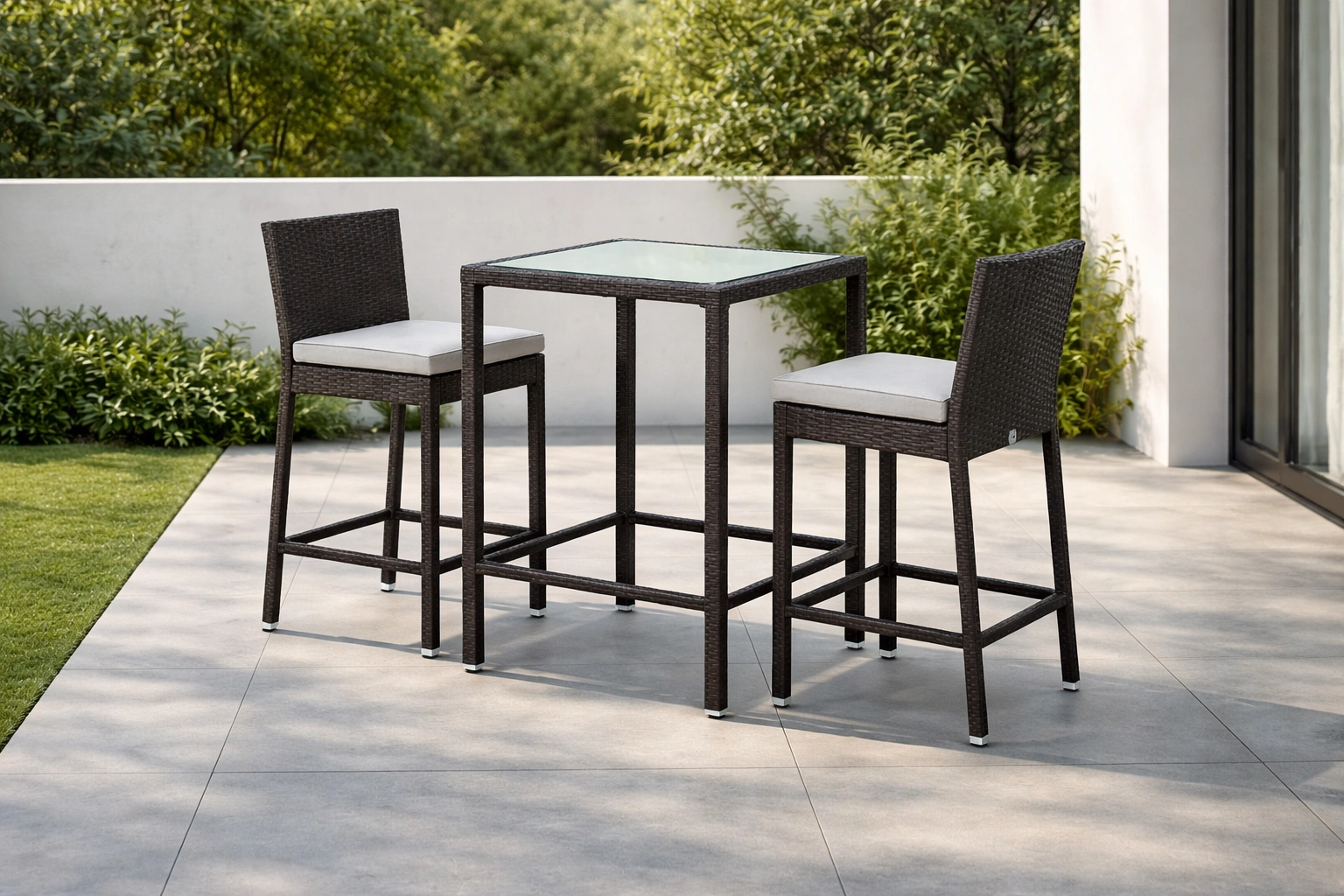 Conjunto de jardín compacto de metal y ratán sintético