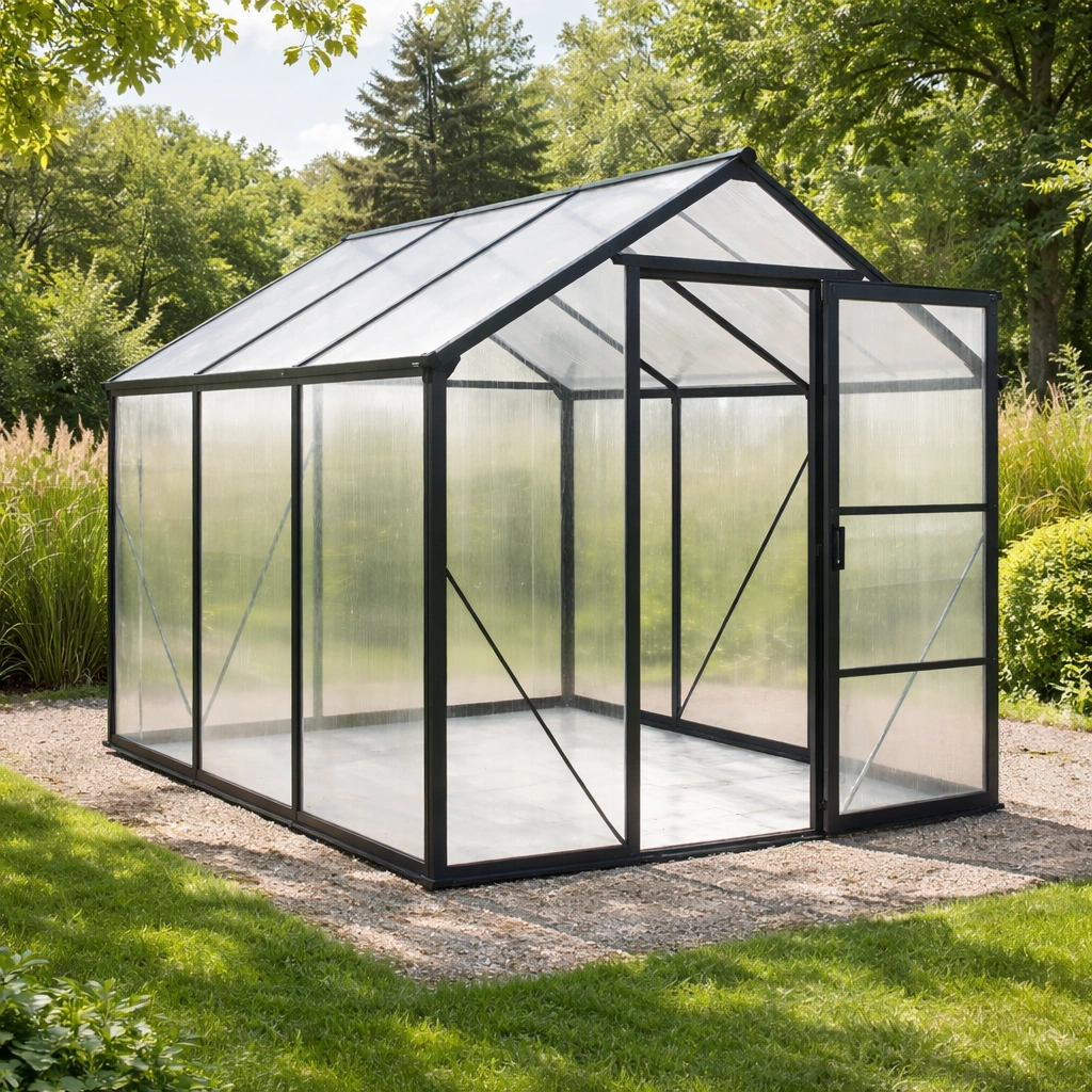 Invernadero de aluminio y policarbonato transparente estructura negra 190x190x195 cm